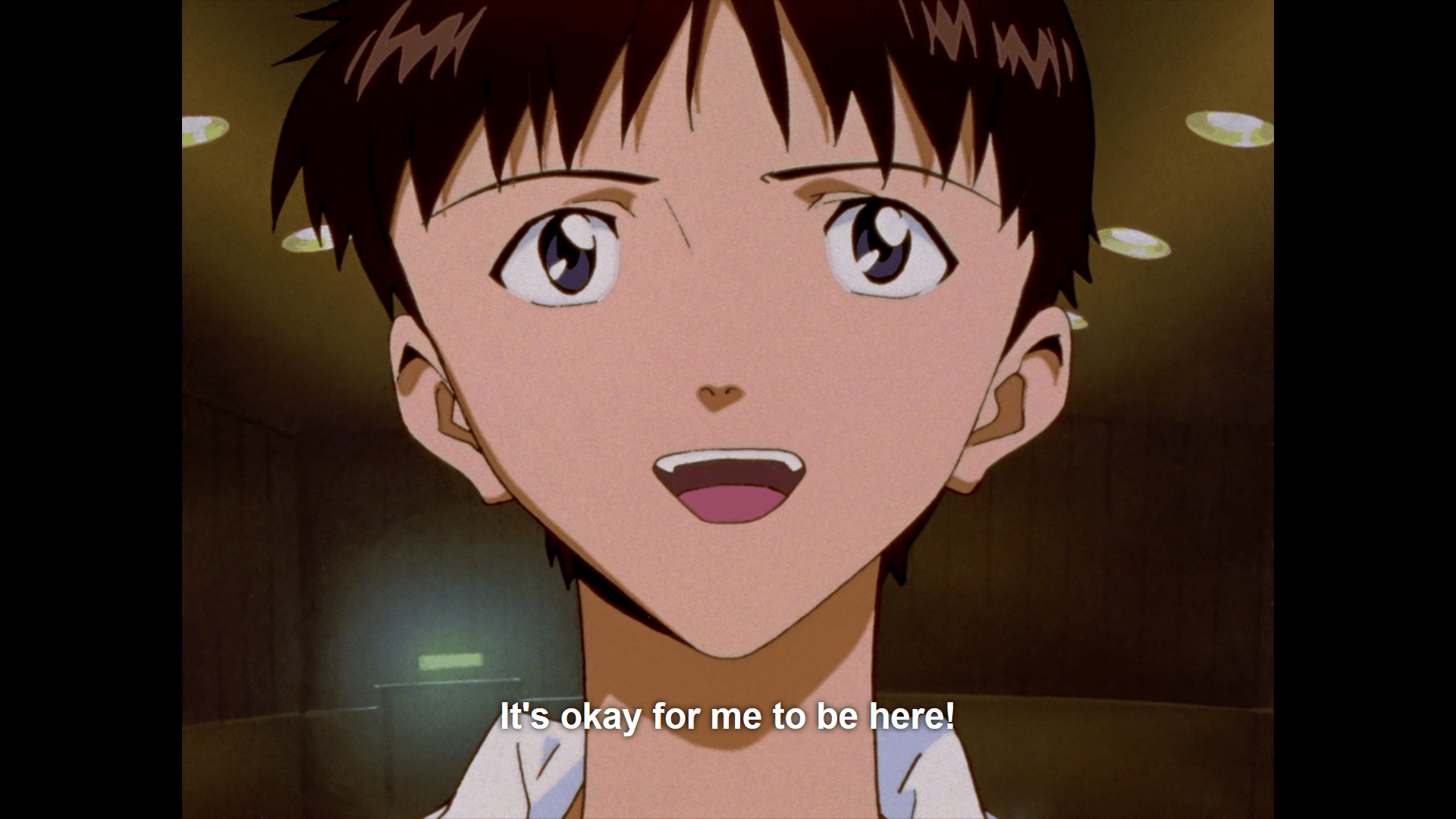 "neon genesis evangelion" ends with shinji finally understanding that it isn't the eva or the approval of others that will make him happy; .
